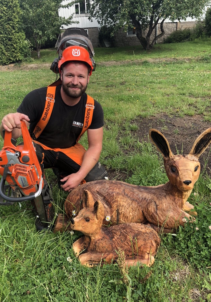 Derek Wheeler jobber sammen med Karl Ovesen og Andreas Dolata med carving på større og mindre prosjekter.